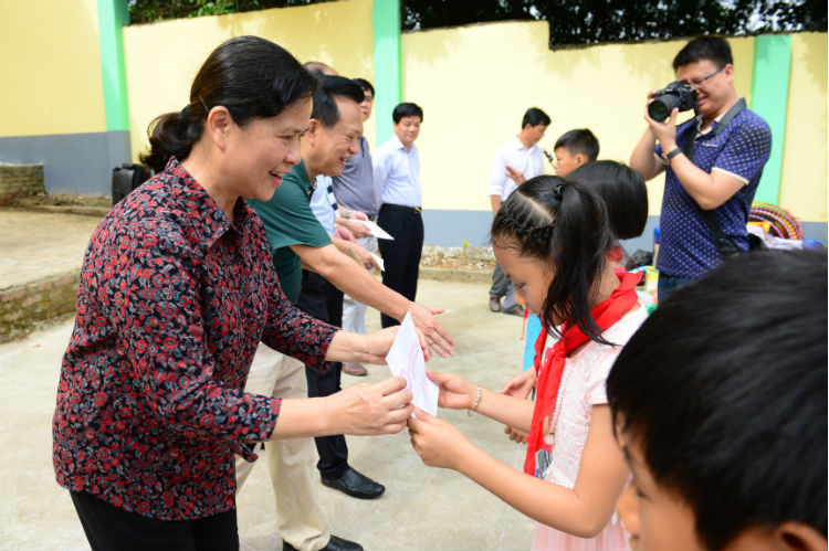 5月31日,市政協副主席羅志芳(右二)到欽北區新棠鎮南忠村小學開展2017年張原天博士獎學金春季學期捐助儀式。 陳就邦 攝。