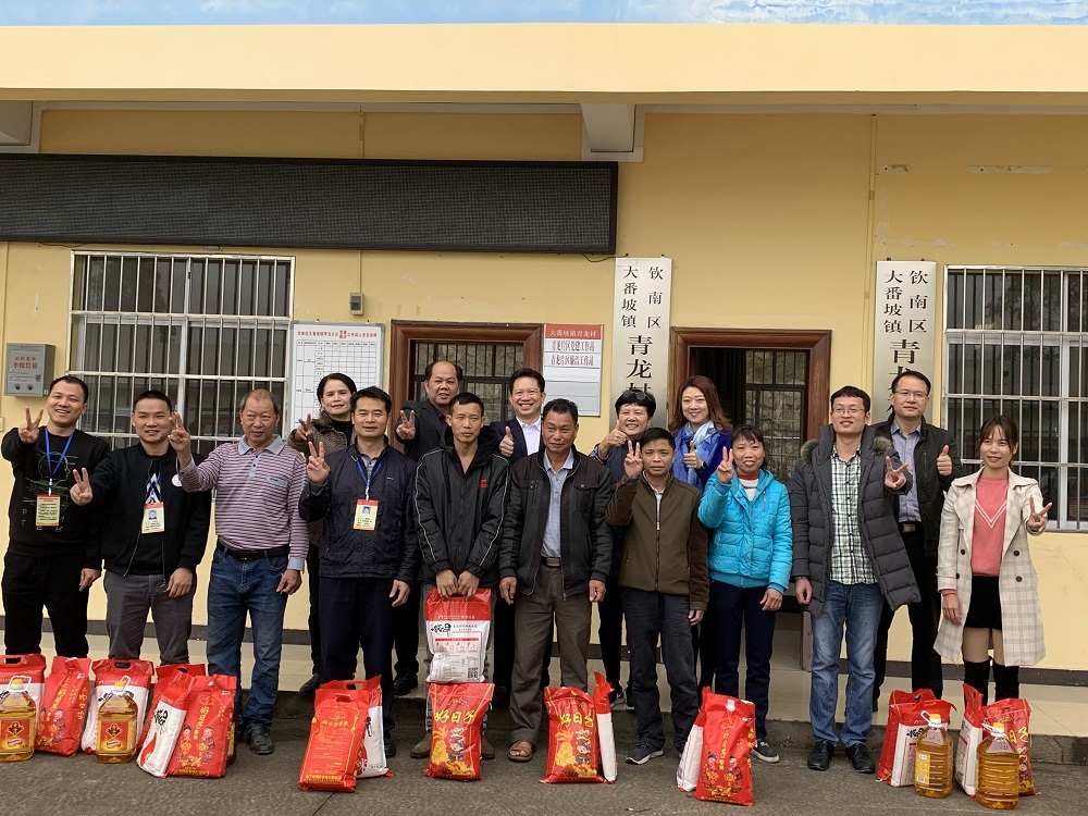 1月16日,钦州市侨界政协委员张原天博士一行来到钦州市钦南区大番坡镇青龙村,为当地村民送去了大米、油等年货物资。共同参与慰问的人员有:广西协力扶助基金会理事万朗,加拿大华邺投资发展有限公司总裁、中国侨联青委会常委黄晔华,钦州市政协副秘书长、办公室主任刘如明,钦州市侨联主席施红等人。