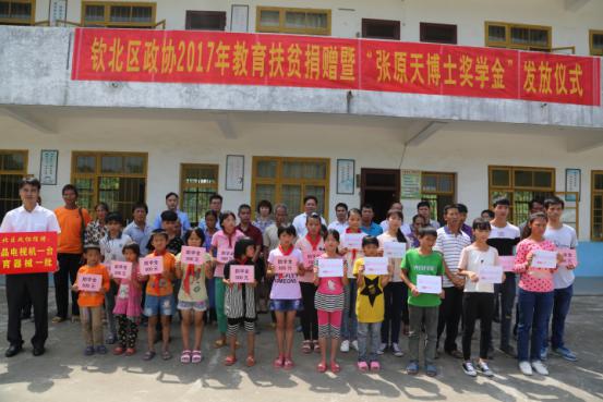 5月31日上午,钦北区政协在大直镇彭久小学举行钦北区政协教育扶贫捐赠暨“张原天博士奖学金”发放仪式,向该小学捐赠了液晶电视一台及一批体育器械,向15名建档立卡的贫困户学生每人捐赠500元助学金并向获得“张原天博士奖学金”的11名优秀贫困学生发放了奖学金共12000元。区政协黄祥剑主席、陈宇才副主席、何晓副主席、区教育局、大直镇党委、政府有关领导及区政协各委室主任参加仪式。